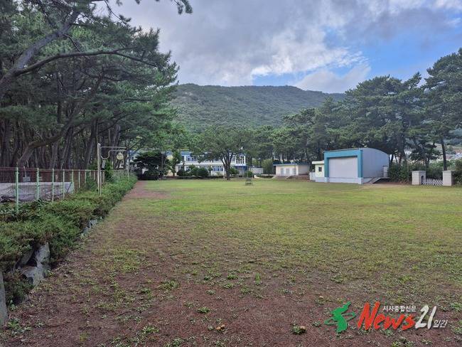 지금은 폐교된 남해 송정초등학교 아름다운 해송만이 학교와 해변의 경계를 이룬다.