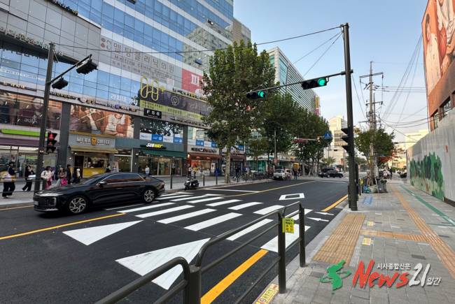 구는 이러한 인파 혼잡 해소를 위해 출입구 바로 앞에 있던 기존 고원식 횡단보도를 북측으로 이전하고 차량·보행자 신호등을 신설하여 보행자와 차량 모두의 안전을 확보했다.