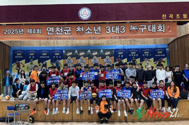 (재)연천군청소년육성재단(문화의집)은 11월 15일(토) 전곡초등학교 체육관에서 ‘제4회 연천군 청소년 3대3 농구대회’를 성황리에 개최했다. 이번 대회는 연천군 관내 중·고등학생 청소년 200여 명이 참여해 열띤 경쟁과 우정을 나누며 건강한 청소년 스포츠 문화를 조성하는 자리가 됐다. 올해로 4회를 맞은 이번 대회는 청소년들의 학업...