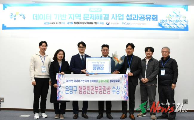 ▲ 사진=은평구청서울 은평구(구청장 김미경)는 지난 20일 한국지역정보개발원 KLID홀에서 열린 성과공유회에서 ‘2025년 데이터 기반 지역 문제해결(공감e가득) 사업’에서 AI-IoT 기반 전동보장구 이동 안전 플랫폼 구축 성과를 인정받아 행안부장관상을 받았다고 밝혔다.