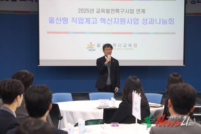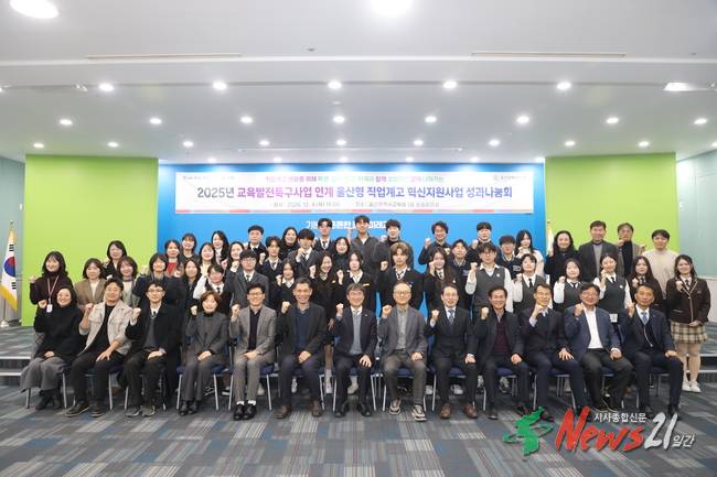 울산광역시교육청(교육감 천창수)은 4일 외솔회의실에서 ‘2025년 교육발전 특구사업 연계 울산형 직업계고 혁신지원 사업 성과나눔회’를 열었다.