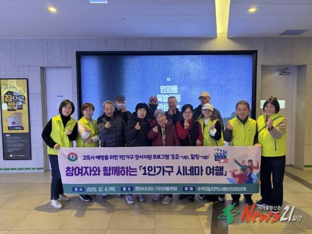 ▲ 사진=구리시청구리시(시장 백경현) 수택3동지역사회보장협의체(민간위원장 서영옥)는 지난 4일, 연말연시를 맞아 중장년 1인 가구의 고립완화와 정서적 지지 기반 마련을 위한 ‘1인 가구 시네마 여행’ 프로그램을 진행했다고 밝혔다.