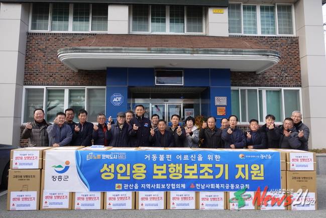 장흥군 관산읍 지역사회보장협의체(공동위원장 사선환, 유양선)는 4일 관산읍 행정복지센터에서 관산읍지사협 위원, 해당 마을 이장 20여명이 참석한 가운데 ‘성인용 보행보조기 전달식’이 개최되었다고 전했다.