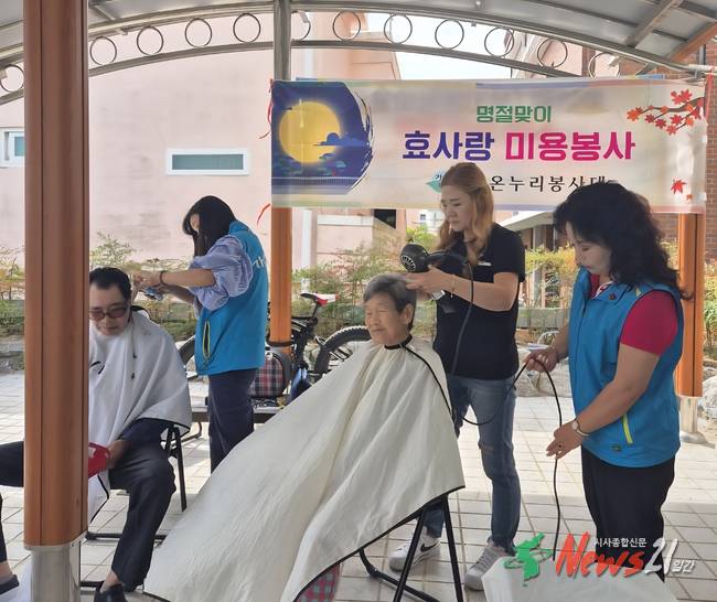 가온누리봉사대 효사랑 이·미용봉사팀은 9월 29일 전하2동 행정복지센터에서 추석 명절을 맞아 어르신들을 위한 미용 봉사활동을 펼쳤다.