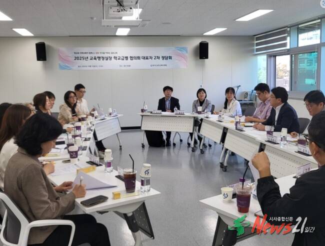경기도김포교육지원청(교육장 한혜주)은 2025. 10. 15.(수) 10:30, 김포교육지원청 2층 이룸실에서 유치원, 초등학교, 중학교, 고등학교, 특수학교별 지구 단위로 구성된 교육행정실장 지역별 협의회 회장 및 총무 등 16명과 김포교육지원청 행정과장 등이 참석한 가운데 정담회를 개최했다.