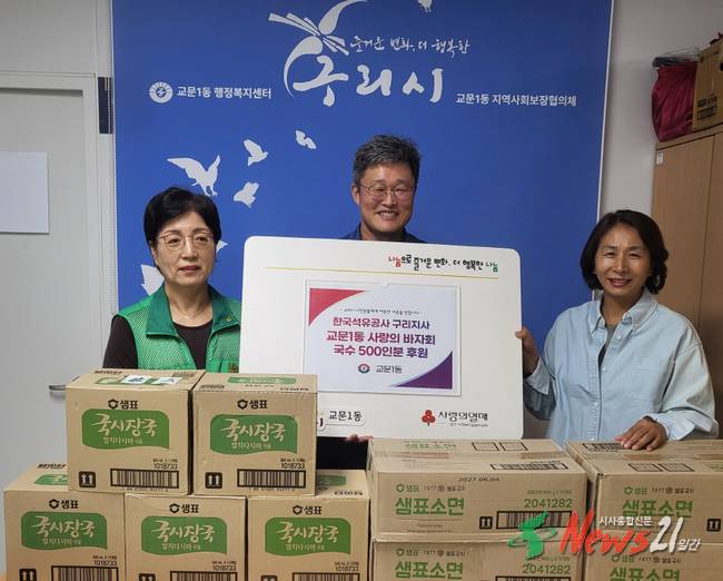 이번 바자회는 교문1동 새마을부녀회와 새마을지도자협의회가 주관해 지역 내 소외계층을 돕기 위해 마련된 행사로, 새마을부녀회원들은 정성껏 준비한 음식과 다양한 먹거리를 판매해 이웃돕기 기금을 조성했다. 또한 관계기관, 단체회원, 주민들이 함께 참여해 따뜻한 나눔의 장을 만들어 냈다.특히 한국석유공사 구리지사는 이번 바자회의 취지에 동참해 국수 500인분을 후원하며 지역사회에 관한 관심과 사랑을 실천했다. 이번 후원은 지역 상생과 나눔문화 확산을 위한 사회공헌활동의 일환으로, 지역사회 공기업의 모범적인 나눔 사례로 평가받고 있다.박희제 지사장은 “작은 정성이지만 어려운 이웃들에게 도움이 되길 바라며, 앞으로도 지역과 함께하는 기업으로서 사회적 책임을 다하겠다”라고 전했다.백경현 구리시장은 “매년 지역사회를 위해 꾸준히 나눔을 실천해 주시는 한국석유공사 구리지사에 감사드린다”라며,“이번 기탁이 주민들이 함께하는 행사에 따뜻한 온기를 더하는 뜻깊은 나눔이 되었다”라고 전했다.