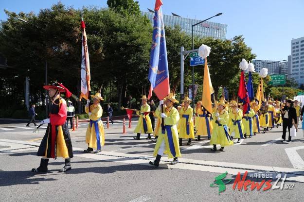 사또 분장을 한 박강수 마포구청장과 취타대, 풍물패, 동별 기수단 등 행렬은 신명나는 음악과 함께 마포구청 앞 마포구민광장을 출발해 월드컵광장 평화공원 수변무대까지 행진했다.