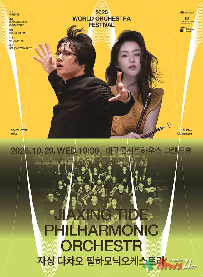 ▲ 사진=대구광역시2025년에 창단된 자싱 다차오 필하모닉 오케스트라는 아시아 교향악계의 새로운 중심축이자, 도전적인 존재로 떠오르고 있다. 중국 상하이와 항저우 사이에 위치한 전략적 도시인 자싱에 근거지를 두고 있으며, 자싱을 대표하는 자연 현상인 ‘첸탕강 대조조(錢塘江大潮)’에서 오케스트라의 명칭과 예술적 정체성을 가져왔다.