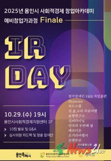 ▲ 사진=용인특례시용인특례시(시장 이상일)는 오는 29일 열리는 ‘사회적경제 창업아카데미 파이널 IR 데모데이’에 참가할 ‘청중평가단’을 모집한다고 22일 밝혔다.