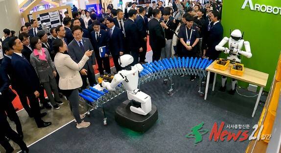 〈세부 내용〉 동관에서 열린 모빌리티 전시에서는 ‘세계 최초 실내 자율주차로봇’ 타이틀을 보유한 HL로보틱스의 ‘주차로봇 파키’, 샤오펑의 UAM ‘X2’ 기체, 교통카드가 필요 없는 티머니의 ‘태그리스 결제시스템’, 국내 최초 UAM 형식인증을 추진 중인 브이스페이스의 ‘VS-300’ 등을 체험하려는 관람객들로 연일 전시장이 붐볐다. 또한 발레오, 베이리스, 대동, 모빈 등 지역 기업들은 지능형자동차부품진흥원, 한국자동차연구원과 협업해 ‘AI 이동혁신관’에서 독자적인 AI 기술 역량을 선보였다. 서관 로봇 전시에서는 K-휴머노이드 대표주자인 에이로봇의 ‘앨리스’, 로보케어의 반려로봇 ‘케미’, 유니트리 휴머노이드 ‘G1’의 복싱 시연 등이 주목을 받았으며, 한국로봇산업진흥원, 대구기계부품연구원은 ‘기업 공동관’을 구성해 다양한 휴머노이드 기술을 선보였다. ICT 분야에서는 이수페타시스, 메가존 클라우드, 국가대표 AI 기업 등이 신규로 참여했으며, 디지털혁신진흥원과 ICT협회 등이 지역 기업들과 공동관을 구성해 AX 연구개발 허브로서 대구의 비전을 소개했다.