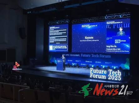 ▲ 사진=KBS NEWS 영상 캡처APEC CEO 서밋의 사전 행사 격인 퓨처테크 포럼, 이틀째 주제는 AI, 인공지능 생태계 구축이었다.