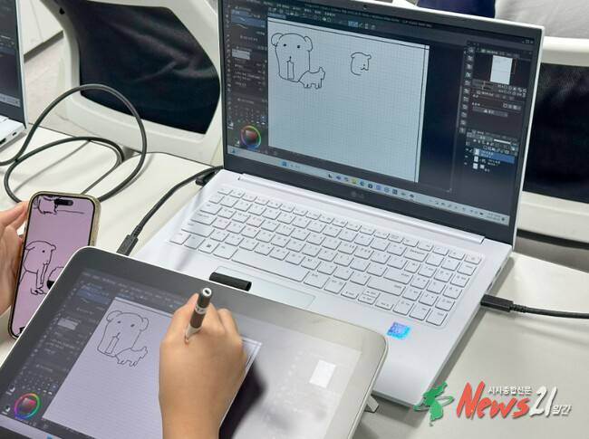 이번 프로그램은 태블릿을 활용한 디지털드로잉을 통해 청소년들이 직접 디자인한 이미지를 굿즈나 웹툰으로 제작해 보는 체험으로, 4차 산업혁명 시대에 필요한 창의적 콘텐츠 제작 능력을 키우고 관련 진로를 탐색할 기회를 제공했다.