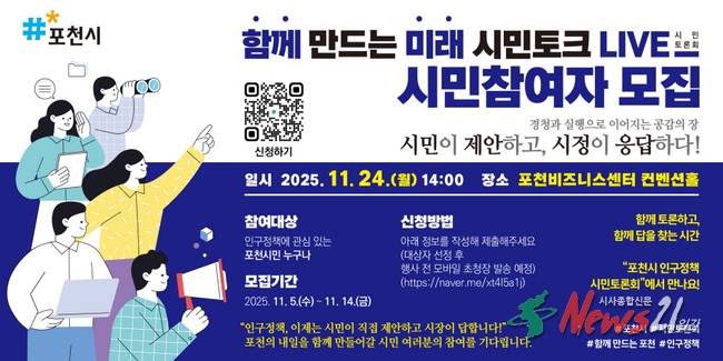 포천시 관계자는 “많은 시민이 참여해 포천의 미래 변화를 함께 만들어가는 뜻깊은 시간이 되길 바란다”고 말했다.