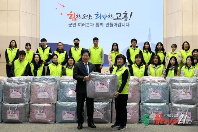 ▲ 사진=고흥군고흥군(군수 공영민)은 본격적인 동절기에 앞서 17일 군청 우주홀에서 독거노인·장애인 등 사회취약계층을 위한 ‘한파대비 따뜻한 겨울나기 이불 전달식’을 진행했다고 밝혔다.