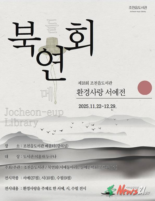 ▲ 사진=제주시 조천읍도서관은 11월 22일부터 12월 27일까지 도서관 1층 배움터에서 ‘제18회 환경사랑 서예전’을 개최한다.