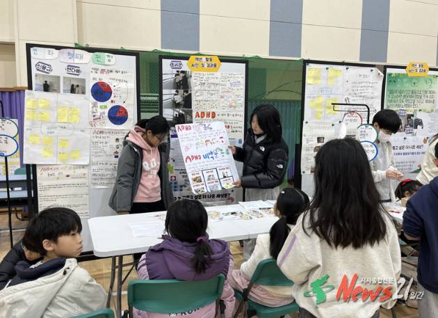 ▲ 사진=의정부시청솔뫼초등학교(교장 이수연)는 11월 18일, 2025학년도 6학년 IB PYP 전시회를 개최하고 학생들이 1년 동안 진행한 탐구 결과를 발표하는 자리를 마련했다. 이번 전시회는 IB 학교로서 학생 주도 탐구와 국제적 사고력을 강조하는 중요한 행사로, 6학년 학생들이 팀별로 구성한 20개의 탐구 주제를 중심으로 진행되었다.