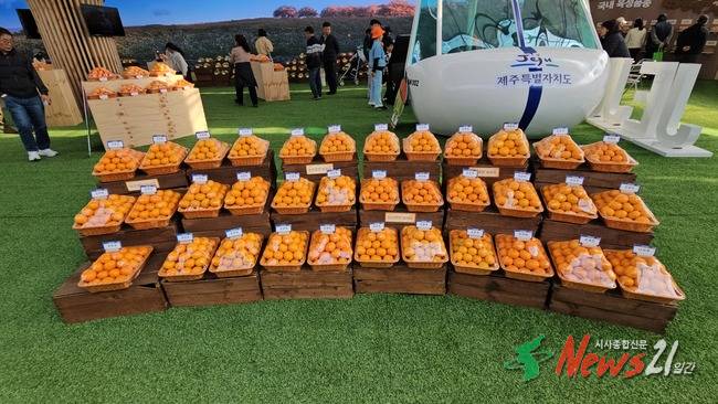 사진= 2025 제주감귤박람회장 고품질-고당도감귤 전시= 김문석 기자 ⓒ뉴스21