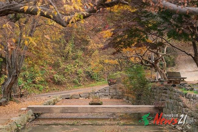 가야산 줄기 상왕산에 자리한 천 년 고찰 개심사. ‘마음을 열다’라는 뜻처럼 개심사는 올라가는 길에서부터 고즈넉한 풍광을 열어준다. 안개 낀 호수를 지나 마주하는 통나무로 만든 외나무 다리. 속세의 때를 씻으며 다리를 건너 마주한 사찰은 옛 절의 단아함을 고스란히 간직하고 있다. 특히 다듬지 않고 생김 그대로의 나무를 기둥 삼은 건물들은 천 년 고찰의 중후함과 그윽한 운치를 더한다.