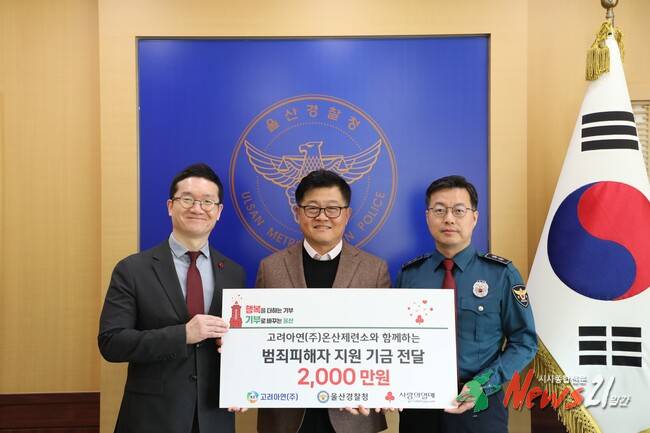 - 울산경찰청은 2016년부터 고려아연(주)을 비롯한 지역 기업들의 지정 기부금을 통해 총 412명의 범죄피해자에게 4억 7천만 원을 지원하였다.