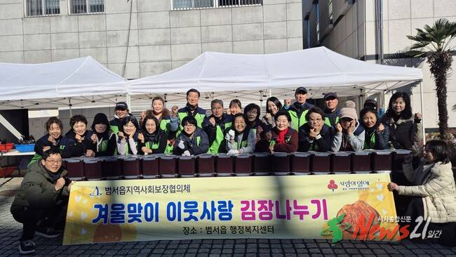 ▲ 울주군청(뉴스21맇간/최원영기자)=울주군 범서읍 지역사회보장협의체(공동위원장 김효준, 백문현)가 4일 범서읍 행정복지센터에서 ‘2025년 겨울맞이 이웃사랑 김장나누기’ 행사를 실시했다.