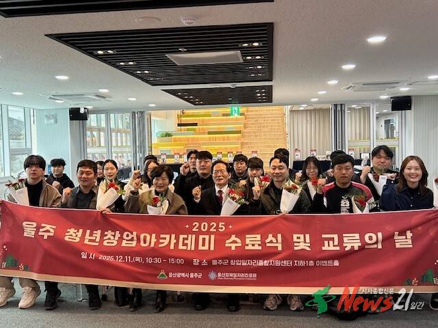 (뉴스21일간/최원영기자)=울산 울주군이 울산경제일자리진흥원과 11일 울주군 창업일자리종합지원센터에서 ‘2025 청년창업아카데미 수료식 및 교류의 날’ 행사를 개최했다.