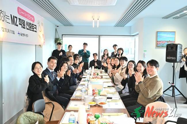 (뉴스21일간/노유림기자)=울산 중구(구청장 김영길)가 12월 11일 오전 11시 50분 지역의 한 식당에서 ‘결혼 엠지(MZ) 직원 간담회’를 개최했다.