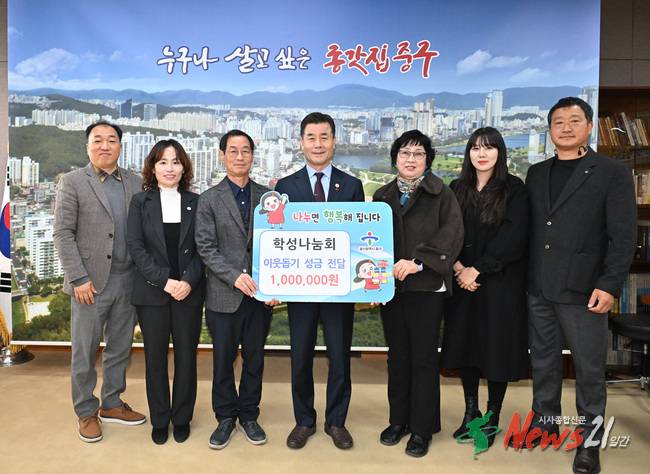 (뉴스21일간/노유림기자)=학성나눔회(회장 김진구)가 12월 11일 오전 11시 중구청 구청장실을 방문해 울산사회복지공동모금회를 통해 이웃돕기 후원금 100만 원을 전달했다.