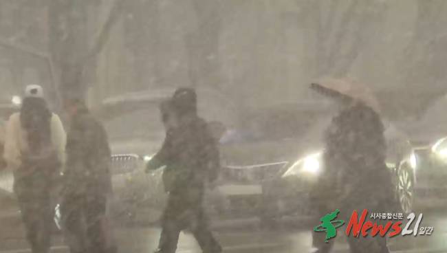 기상청은 중부 내륙에 최대 10cm, 서울을 포함한 중부와 남부 내륙에는 1~5cm의 눈이 내릴 것으로 내다봤다.