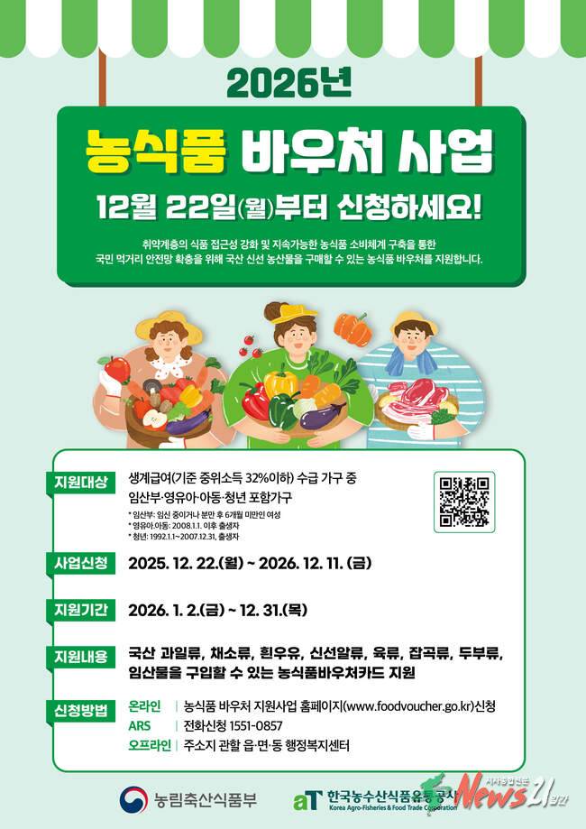 ▲ 사진=양주시양주시가 오는 12월 22일(월)부터 예산 소진 시까지 ‘2026년 농식품바우처 지원사업’ 신청자를 모집한다. 다만, 2025년도 사업신청자는 별도의 신청절차 없이 자격검증을 통해 지원여부가 결정된다.