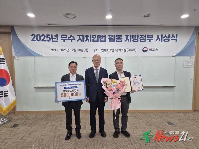 충주시가 법제처가 주관하는 ‘2025년 우수 자치입법 활동 지방정부’로 선정돼 법제처장상을 수상했다.