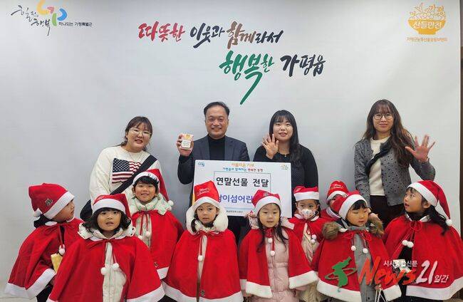 가평군 가평읍 소재 남이섬어린이집 선생님과 아이들은 지난 19일 가평읍 행정복지센터를 방문해 따뜻한 연말 선물을 전달했다.