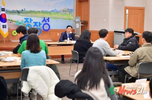 ▲ 사진=장성군장성군이 최근 농업기술센터 농업인회관에서 ‘청년농업인과 현장지원단 간담회’를 열었다.