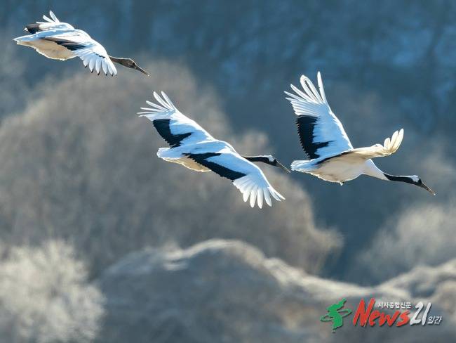 매년 겨울 수천 마리의 두루미가 시베리아 등 북방 지역에서 날아와 머문다.