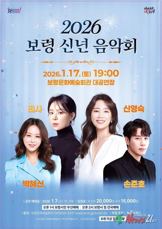 보령시는 새해를 맞아 오는 17일 오후 7시 보령문화예술회관 대공연장에서 시민들과 함께하는 2026년 신년음악회를 개최한다고 밝혔다.