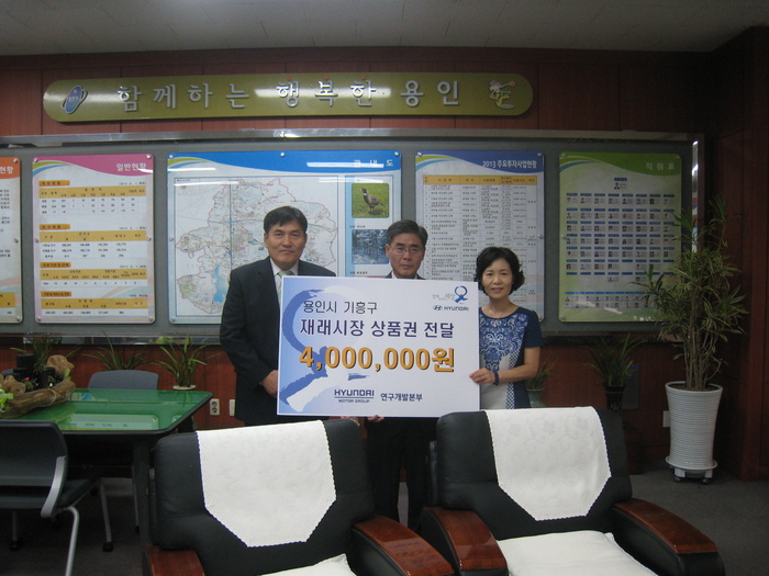 현대자동차(주) 연구소는 매년 설과 추석 명절에 기흥구 관내 어려운 이웃을 위한 온누리상품권을 기탁하며 도움의 손길을 지속적으로 펼쳐나가고 있다.