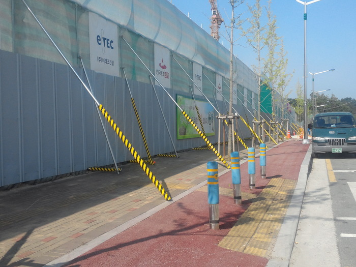 시공회사인 이테크측에서는 조만간 방음벽설치를 위해 인도에 있는 파이프는 철거해 현장 안쪽에 설치할 계획이며 컨테이너 박스는 땅 소유주와 협의가 이뤄지지 않아 행정절차를 거치지 못했다고 말햇다.