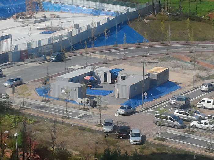 또한 공사현장이 진행되면서 현장내부에 있던 사무실을 공사장 밖 공터에 임의로 가설건축물인 콘테이너박스 6개동을 설치해 사용하면서 각종 차량도 무단으로 진입해 주차해 놓고 있다.