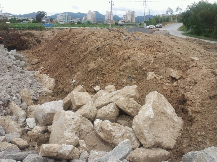 | ▲ 제천시 강저지구 도로개설 공사중 에서 나온 건설폐기물. © 남기봉 | |