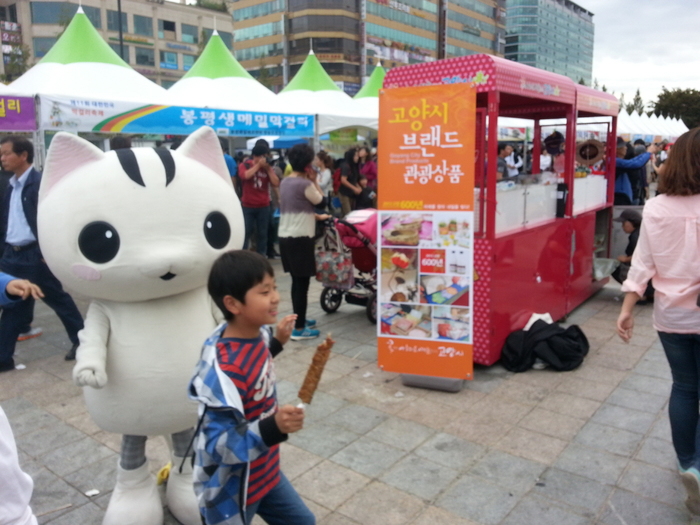 행사장 입구에 들어서면 앙증맞은 고양이 캐릭터 탈을 쓴 사람이 방문객들을 반겨 아이들은 물론 어른들도 고양이 캐릭터와 함께 사진 찍으며 즐거워했다. 이는 고양이 이미지 등을 활용한 브랜드 관광상품 홍보관으로 저절로 발길이 이어져 여러 제품들이 인기를 모았다.