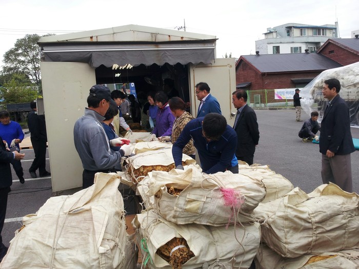 | ▲ 제천엽연초생산조합 이 조합장에서 잎담배를 수매하고 있다.(사진제공=연초생산조합) ©남기봉 | |