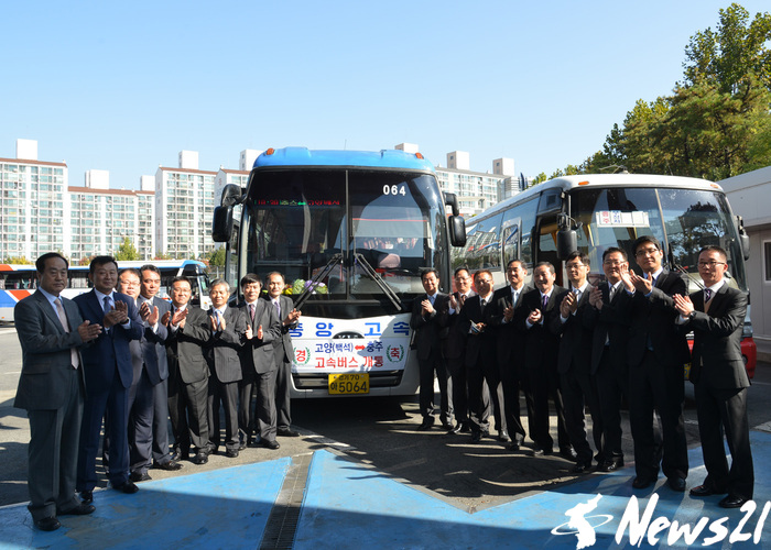 충주시와 경기도 고양시를 연결하는 고속버스가 10월 23일 오전 7시부터 첫 운행에 들어갔다.