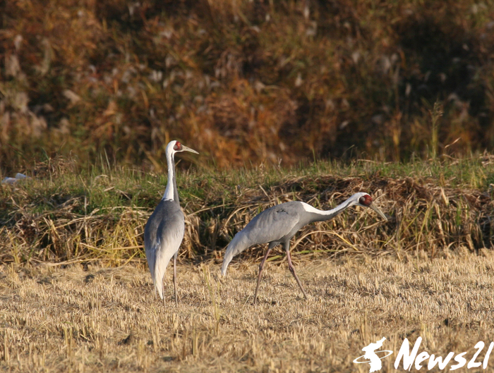 고양시(시장 최성)는 지난 22일 오후 한강하구 장항습지에서 재두루미(천연기념물 203호, 멸종위기야생생물 2급) 5마리가 관찰됐다고 밝혔다.
