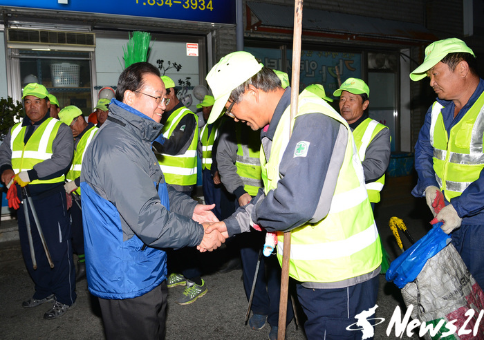 한편, 이 시장은 이날 오전 5시부터 문화동 소재 착한식당 급식봉사와 삼원사거리에서 일용근로자 격려, 중원대로변 거리청소를 실시하고 있는 환경관리원과 함께 아침식사를 하는 등 봉사활동과 현업부서 직원을 격려하는 것으로 취임 2주년 일정을 시작했다.