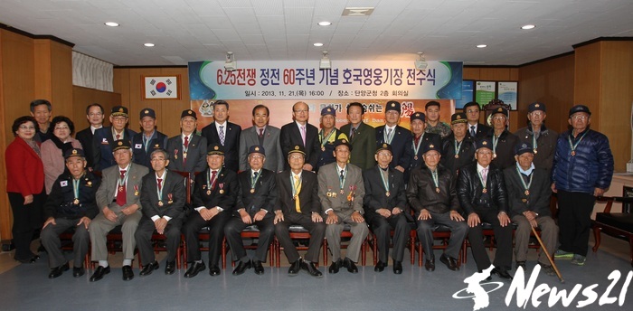 단양군은 지난 21일 군청 2층 회의실에서 김동성 군수와 각급 기관단체장, 6.25참전유공자 등 50여명이 참가한 가운데 ‘호국영웅기장 전수식’을 가졌다.