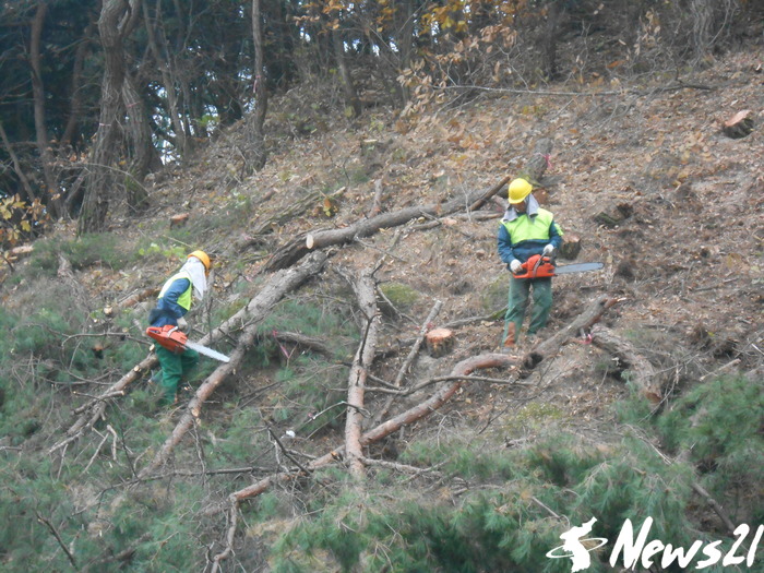 | ▲ 재선충병 확산방지를 위해 충주시가 21일 부터 나무를 벌채하고 있다. (사진제공=충주시청) | |