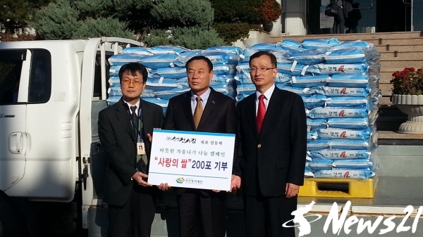 신안천사김(주) 대표이사 권동혁은 6일 압해읍에 거주하고 있는 어려운 가정을 위해 써달라며 ‘사랑의 쌀’ 10kg 200포를 전달했다.