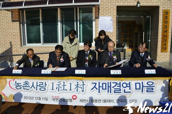 국민건강보험공당(이사장 김종대 이하 건보공단)과 청품면 물태리·연곡리·신리 3개 마을이 12월 11일 오전11시 물태리 다목적회관에서 농촌사랑 1사1촌 자매결연을 맺였다.