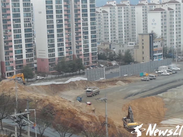 | ▲ 제천시 장락동 지상복합36층 신안실크밸리 아파트 터파기 공사가 진행중에 있다. © 남기봉=기자 | |