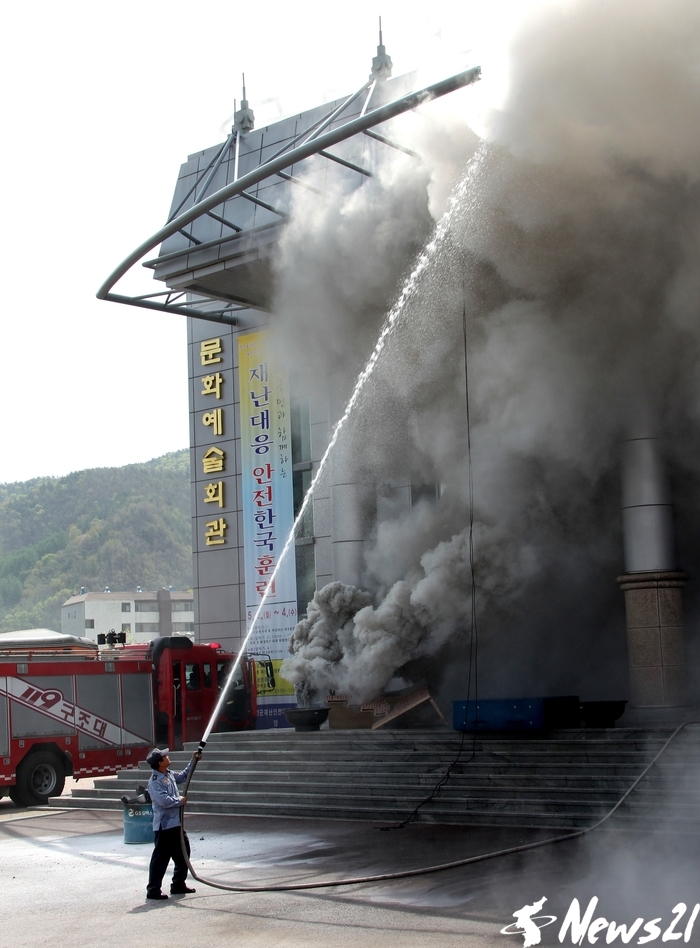 | ▲ 지난해 재난대응 안전한국 모의 훈련 모습. (사진제공=단양군청) | |