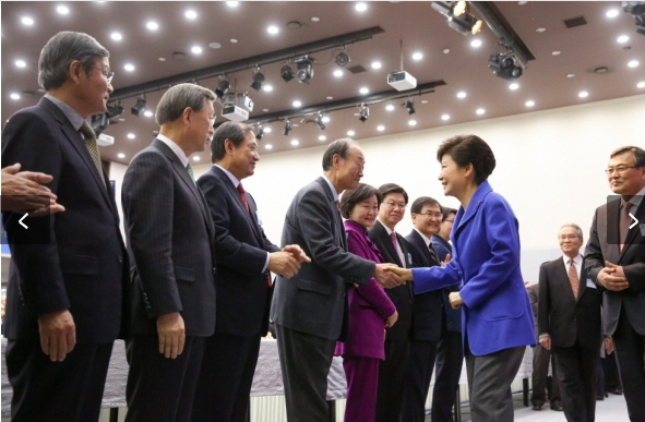 | ▲ 인사를 나누고 있는 박근혜 대통령 © 청와대 | |